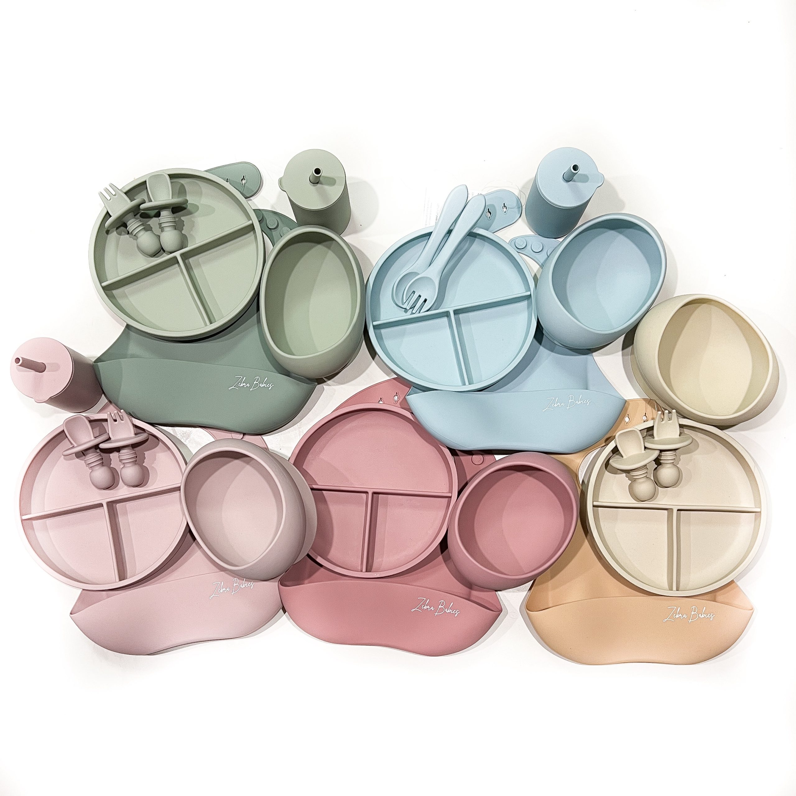 SAVE with this value silicone baby feeding set. Our large oval silicone suction bowl, matching suction plate your choice of silicone baby cutlery, a sippy cup and silicone bib. Great value tableware collection. Large oval design to help encourage self feeding. The curved lips allows the matching spoon to be levelled, less mess! This set includes our super cute sippy cups too. Paired with one of our silicone bibs for easy clean up! Strong silicone suction with an easy release tab, keeping food off the floor and in baby’s belly.