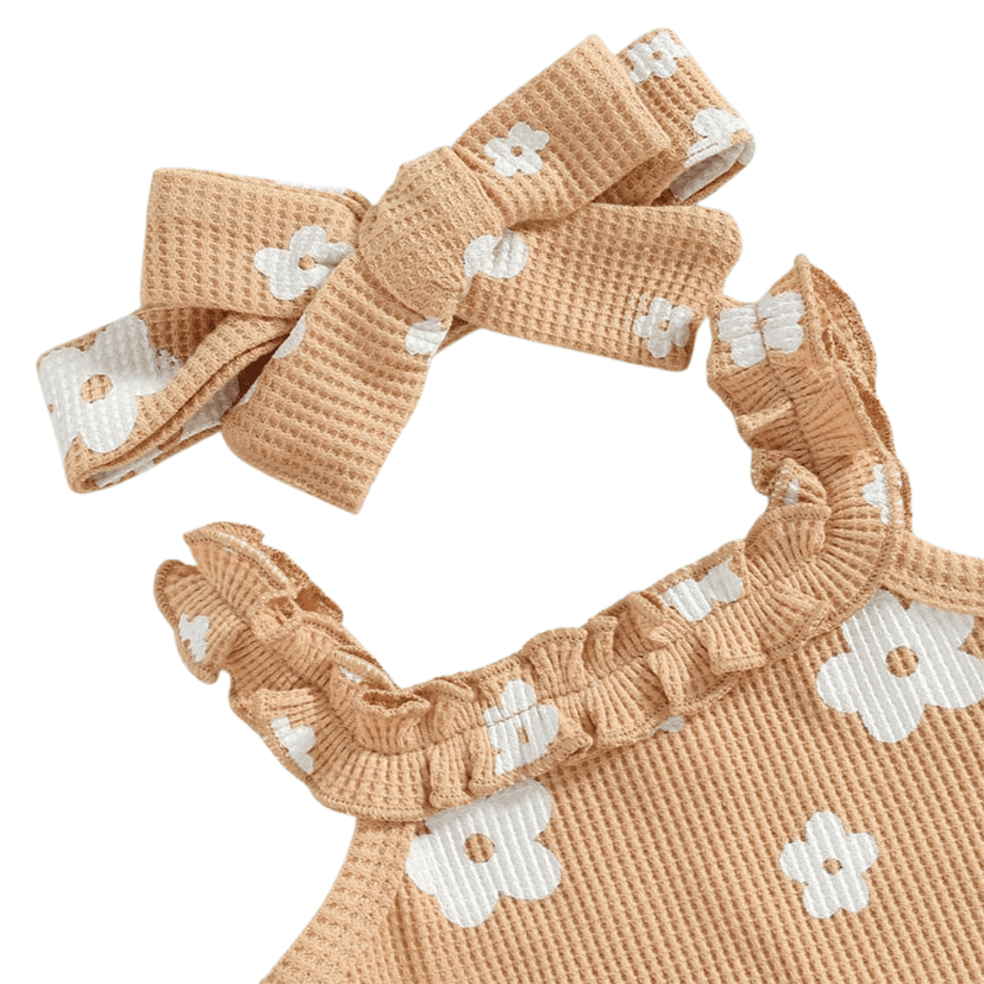 Our Baby daisy romper and bummies set in white, the perfect addition to your little one’s wardrobe! Made from soft and breathable cotton and spandex, this set is designed to keep your baby comfortable all day long.