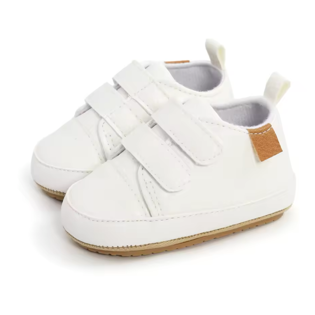 Introducing our charming white pu leather baby shoes with velcro straps, designed to provide both style and comfort for your little one. Crafted from high-quality, soft pu leather, these shoes are gentle on delicate feet while ensuring durability for everyday wear. The soft white hue adds a touch of sophistication, making them perfect for any occasion, whether it’s a family gathering, a day at the park, or simply a stroll around the neighbourhood. The classic design features adjustable velcro straps that not only enhance the fit but also make it easy to put on and take off, ensuring that your baby stays comfortable and secure.