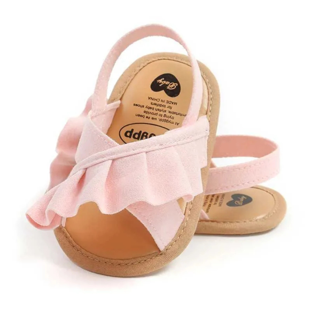 Step into summer with our adorable pink baby sandals adorned with charming ruffles, designed to keep your little one’s feet both stylish and comfortable. Crafted from soft, breathable materials, these sandals ensure that your baby’s delicate skin is protected while allowing for maximum airflow. The soft pink colour adds a touch of elegance, making them perfect for any occasion, whether it’s a family picnic, a day at the beach, or a special celebration. The ruffle detailing not only enhances the visual appeal but also adds a playful touch that will delight both parents and little ones alike.