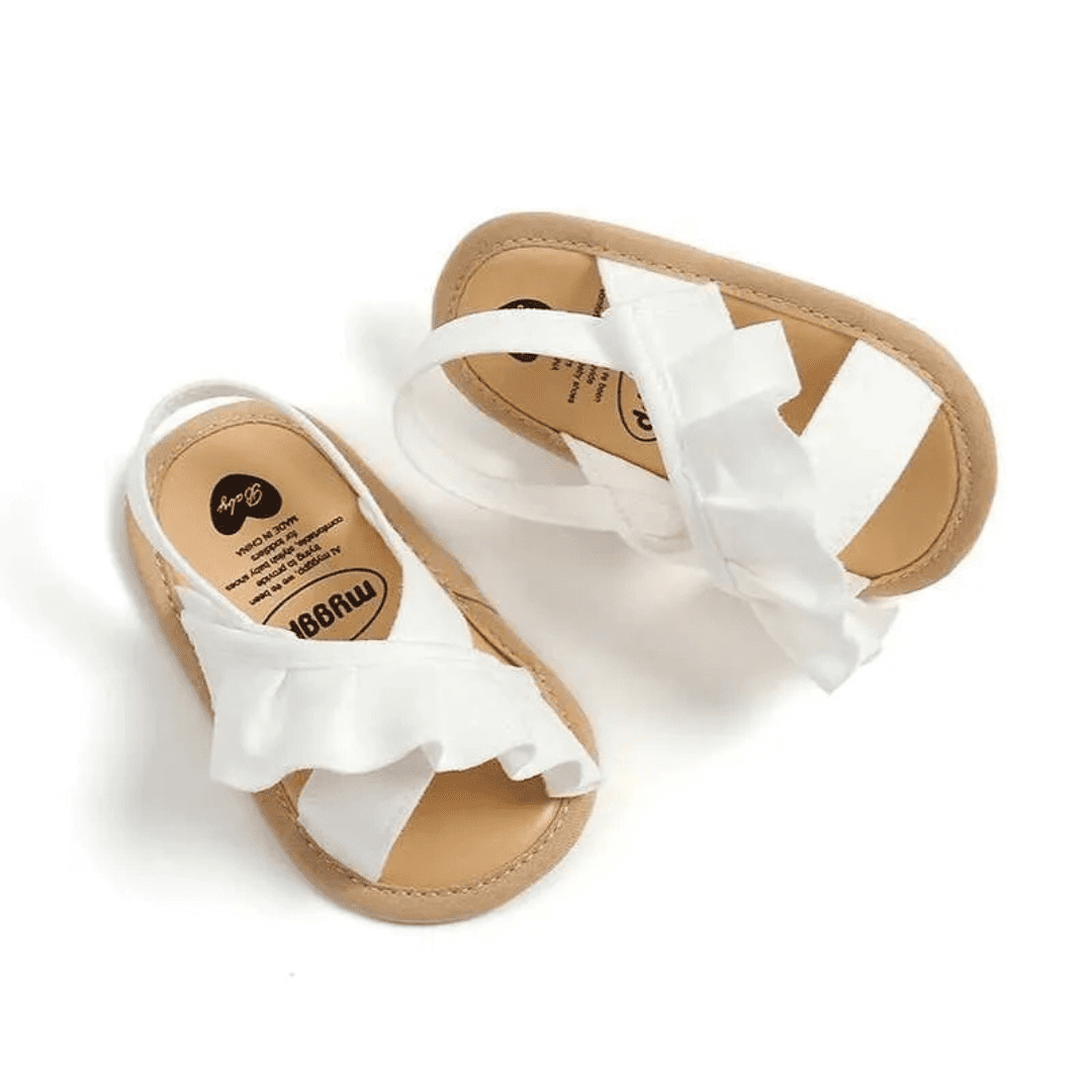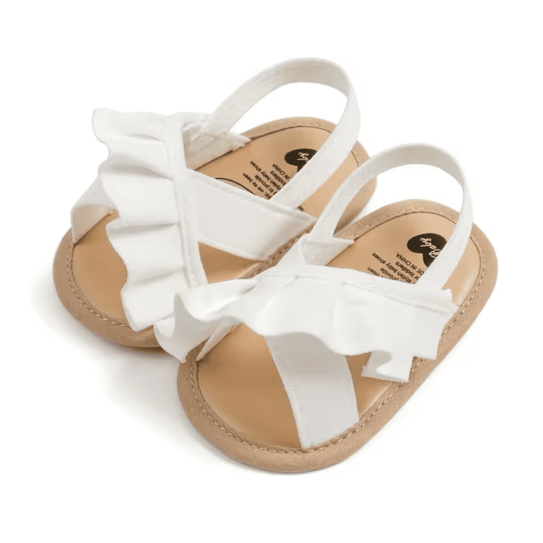 Perfect for pairing with dresses, shorts, or a casual outfits, these white baby sandals with ruffles are versatile enough to complement any look. They make an excellent gift for baby showers, birthdays, or just because you want to treat your little one to something special. Easy to clean and maintain, these sandals will remain a staple in your child’s wardrobe. Embrace the joy of dressing your baby in these delightful sandals, where comfort meets cuteness in every step!